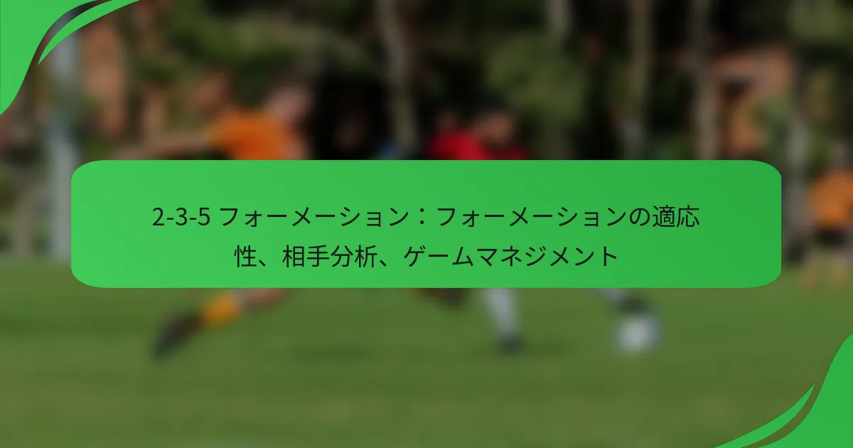 2-3-5フォーメーションは、2人のディフェンダー、3人のミッドフィールダー、5人のフォワードを特徴とするクラシックなサッカー戦略で、攻撃的なプレーを優先しながら基本的な防御の枠組みを確保します。その適応性により、チームは相手の強さや試合状況に応じて選手のポジションや役割を変更でき、戦術的な柔軟性を高めます。相手を効果的に分析することで、チームはゲーム管理を最適化し、フィールドでの成功の可能性を高めることができます。 サッカーにおける2-3-5フォーメーションとは? 2-3-5フォーメーションは、2人のディフェンダー、3人のミッドフィールダー、5人のフォワードからなる伝統的なサッカーのセットアップです。このフォーメーションは攻撃的なプレーを強調し、強力な攻撃の存在を通じて得点機会を創出しつつ、基本的な防御構造を維持することを目指しています。 2-3-5フォーメーションの定義と構造 2-3-5フォーメーションは、後方に2人のセンターバック、中央に3人のミッドフィールダー、前方に5人のフォワードを配置した構造になっています。このレイアウトにより、チームは攻撃のサードを支配しつつ、カウンターアタックに抵抗するための十分な防御カバーを持つことができます。このフォーメーションは攻撃的と見なされ、得点を防御の堅実さよりも優先します。 実際には、2人のディフェンダーは相手のフォワードをマークし、防御ゾーンからボールをクリアする役割を担います。3人のミッドフィールダーは攻撃と防御の両方をサポートし、2つのユニット間のプレーをつなぎます。5人のフォワードは、通常ウィンガーとセンターフォワードを含み、得点機会を創出し、決定的なチャンスを決める役割を果たします。 2-3-5フォーメーションの歴史的意義 2-3-5フォーメーションは19世紀後半に登場し、20世紀初頭から中頃にかけて広く使用されました。これは、防御を優先する以前のフォーメーションからのシフトを表し、サッカーにおける攻撃的プレーへの重視の高まりを反映しています。このフォーメーションは、特にプロサッカーの初期に人気があり、チームはファンを楽しませるために高得点の試合を目指しました。 歴史的に、2-3-5フォーメーションはチームが攻撃の潜在能力を最大限に引き出すことを可能にし、その結果、当時の最高得点試合のいくつかを生み出しました。しかし、ゲームが進化するにつれて、チームはよりバランスの取れたフォーメーションを採用し始め、2-3-5は防御の安定性を提供するセットアップに取って代わられました。 フォーメーション内の選手のポジションと役割 2-3-5フォーメーションでは、選手の役割が明確に定義されており、全体的な戦略に貢献しています。2人のディフェンダーは、相手のフォワードが得点するのを防ぐことに焦点を当てています。彼らは空中戦に強く、後方からカウンターアタックを開始できる能力が求められます。 ディフェンダー:相手をマークし、ボールをクリアする役割を担います。 ミッドフィールダー:防御と攻撃の橋渡しをし、両方のプレーのフェーズをサポートします。 フォワード:得点機会を創出し、チャンスを決めることに焦点を当てます。 各フォワードは通常、プレーを広げるウィンガーや主要な得点源となるセンターストライカーなど、特定の役割を持っています。この役割分担により、攻撃的なアプローチを維持しつつ、一定の防御責任を果たすことができます。 2-3-5フォーメーションの進化 サッカー戦術が進化する中で、2-3-5フォーメーションは大きな変化を遂げました。より洗練された防御戦略の導入により、攻撃と防御のバランスをより良く提供するフォーメーションが開発されました。チームは4-4-2や4-3-3のようなフォーメーションを好むようになり、より多くの防御カバーを提供しつつ、効果的な攻撃プレーを可能にしました。 プロプレーでの衰退にもかかわらず、2-3-5フォーメーションはその歴史的意義と現代戦術の形成における役割のために今でも研究され、評価されています。コーチはその原則を分析して、サッカーにおける攻撃戦略の進化を理解することがよくあります。 2-3-5フォーメーションの一般的な別名とバリエーション 2-3-5フォーメーションは、その三角形の形状から「ピラミッド」フォーメーションとも呼ばれることがあります。このフォーメーションのバリエーションには、選手の役割やポジショニングの調整が含まれ、例えば、より多くの攻撃的選手を強調する2-2-6セットアップなどがあります。 別のバリエーションは3-2-5で、追加のディフェンダーが導入され、ややバランスの取れたアプローチを可能にしつつ、強力な攻撃の存在を維持します。これらの適応は、サッカーにおける戦術的アプローチの進化を反映しており、チームは攻撃と防御の間の適切なバランスを見つけようとしています。 試合中に2-3-5フォーメーションをどのように適応させることができるか? 2-3-5フォー