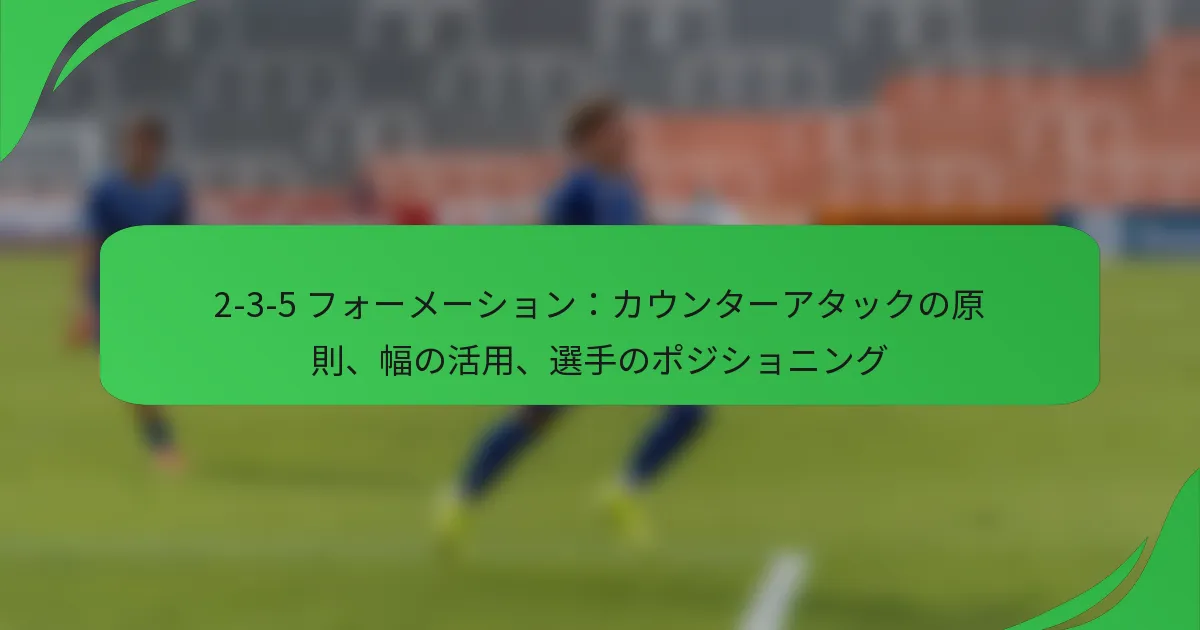 2-3-5フォーメーションは、2人のディフェンダー、3人のミッドフィルダー、5人のフォワードの配置によって攻撃的なプレーを優先するクラシックなサッカー戦略です。カウンターアタックの原則を活用することで、このフォーメーションは守備から攻撃への迅速な移行を促進し、幅と戦略的な選手配置を効果的に利用して得点機会を創出し、相手の守備を広げます。 サッカーにおける2-3-5フォーメーションとは? 2-3-5フォーメーションは、2人のディフェンダー、3人のミッドフィルダー、5人のフォワードを特徴とする伝統的なサッカーのセットアップです。このフォーメーションは攻撃的なプレーを強調し、攻撃のサードで数的優位を通じて相手の守備を圧倒することを目指します。 2-3-5フォーメーションの歴史的背景と進化 2-3-5フォーメーションは19世紀後半に登場し、20世紀初頭に広く使用されました。これは、守備を優先する以前のフォーメーションからのシフトを示し、チームがより攻撃的なスタイルを採用することを可能にしました。このフォーメーションは特にイングランドと南アメリカで人気があり、世界的なサッカーの戦術的発展に影響を与えました。 ゲームが進化するにつれて、2-3-5は守備の組織を重視するよりバランスの取れたフォーメーションからの挑戦に直面し始めました。1920年代にWMフォーメーションの台頭は重要な戦術的シフトを示し、チームは2-3-5の攻撃力に対抗するためにより構造化された守備アプローチを求めました。 2-3-5フォーメーションの主な特徴と構造 2-3-5フォーメーションは、その攻撃的な方向性と流動的な選手の動きが特徴です。主な特徴は以下の通りです: 守備の役割を担う2人のセンターバック。 守備と攻撃の両方をサポートする3人のミッドフィルダー。 得点機会に焦点を当てた5人のフォワード(ウィンガーとセンターフォワードを含む)。 この構造は、ミッドフィルダーがフォワードを迅速にサポートできるため、守備から攻撃への迅速な移行を可能にします。しかし、攻撃フェーズに多くの選手が関与するため、カウンターアタックに対してチームが脆弱になる可能性があります。 2-3-5フォーメーションにおける選手の役割 2-3-5フォーメーションでは、各選手の役割が攻撃と守備のバランスを維持するために重要です。2人のディフェンダーは相手のフォワードをマークし、守備ゾーンからボールをクリアすることに集中します。3人のミッドフィルダーは守備と攻撃の間のリンクとして機能し、ボールを配分し、両方のラインをサポートします。 5人のフォワードは、2人のウィンガーと3人の中央攻撃者に分かれます。ウィンガーはフィールドを広げ、中央の選手が活用できるスペースと機会を作ります。中央の攻撃者は得点機会を決めることに集中し、ゴールを狙います。 現代のフォーメーションとの比較 現代のフォーメーション(4-3-3や4-2-3-1など)は、守備と攻撃の間でよりバランスの取れたアプローチを優先します。これらのフォーメーションは通常、より多くのディフェンダーを特徴とし、チームがより良い守備組織を維持できるようにします。それに対して、2-3-5フォーメーションは、特にカウンターアタックに対してチームを後方で露出させる可能性があります。 2-3-5が攻撃的なプレーを強調する一方で、現代のフォーメーションはしばしば戦術的柔軟性を取り入れ、チームがさまざまなゲーム状況に適応できるようにします。この進化は、守備の堅実さが攻撃の華やかさと同様にますます重視されるサッカーのダイナミクスの変化を反映しています。 2-3-5フォーメーションに関する一般的な誤解 一般的な誤解の一つは、2-3-5フォーメーションが時代遅れで現代サッカーでは効果的でないということです。使用頻度は低くなっていますが、特定の文脈では依然として効果的であり、特にチームがボールを支配し、得点機会を創出することを目指す場合に有効です。 もう一つの神話は、このフォーメーションが守備能力に欠けるということです。攻撃を優先するものの、2人のディフェンダーが熟練していて協調が取れていれば効果的です。このフォーメーションを使用するチームは、ディフェンダーがプレッシャーに対処できる能力を持ち、ミッドフィルダーが必要に応じて戻る準備ができていることを確認しなければなりません。 2-3-5フォーメーションはどのようにカウンターアタックの原則を活用するか? 2-3-5フォーメーションは、迅速な移行と相手が残したスペースを利用することに焦点を当てることで、カウンターアタックの原則を効果的に活用します。この戦略により、チームは守備から攻撃へ迅速に移行し、幅と選手の配置を利用して得点機会を創出します。 サッカーにおけるカウンターアタックの定義 サッカーにおけるカウンターアタックとは、チームがボールを奪い返した後、迅速に守備から攻撃に移行する戦術的アプローチを指します。目的は、相手の一時的な無秩