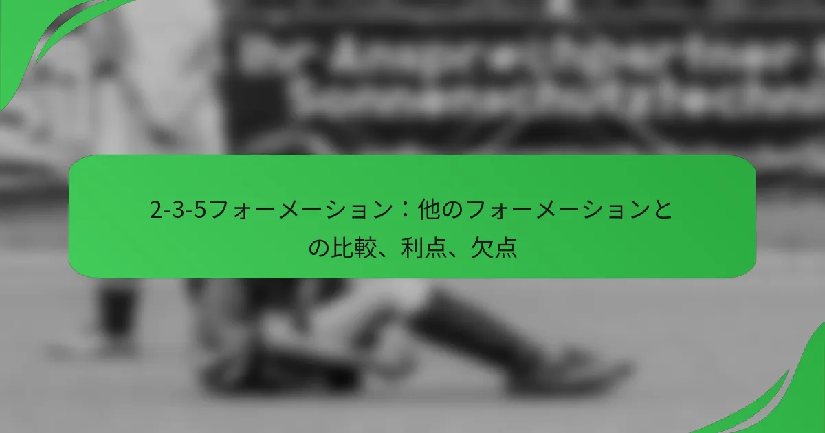 2-3-5フォーメーションは、2人のディフェンダー、3人のミッドフィールダー、5人のフォワードから成る伝統的なサッカー戦略で、攻撃的なプレーを優先します。このフォーメーションは得点機会を増やし、選手の役割を多様化させる一方で、特に素早いカウンターアタックに対しては守備の脆弱性やミッドフィールドのコントロールの課題をもたらします。他のフォーメーションと比較した際の利点と欠点を理解することは、戦術的アプローチを最適化しようとするチームにとって重要です。 サッカーにおける2-3-5フォーメーションとは? 2-3-5フォーメーションは、2人のディフェンダー、3人のミッドフィールダー、5人のフォワードから成るクラシックなサッカーのセットアップです。このフォーメーションは攻撃的なプレーを強調し、20世紀前半に広く使用され、チームが相手に大きなプレッシャーをかけることを可能にしました。 2-3-5フォーメーションの定義と歴史的背景 2-3-5フォーメーションは「ピラミッドフォーメーション」とも呼ばれ、19世紀後半に起源を持ち、1920年代と1930年代に広まったものです。攻撃の可能性を最大化しつつ、基本的な守備構造を維持するように設計されました。時間が経つにつれて、ゲームが進化する中で、チームはよりバランスの取れたフォーメーションを採用し始め、2-3-5の衰退を招きました。 歴史的に、このフォーメーションはイングランドや南アメリカの多くの成功したチームに好まれました。その設計は、チームがボールを支配し、多くの得点機会を創出することを可能にし、ピーク時には人気の選択肢となりました。 フォーメーション内の主要な要素と選手の役割 2-3-5フォーメーションでは、2人のディフェンダーが主に相手の攻撃者を止める役割を担い、3人のミッドフィールダーが守備と攻撃をつなぎます。5人のフォワードは得点機会を創出し、決める役割を持っています。 ディフェンダー:2人のディフェンダーは相手のフォワードをマークし、守備ゾーンからボールをクリアすることに集中します。 ミッドフィールダー:3人のミッドフィールダーはミッドフィールドをコントロールし、ボールを配分し、守備と攻撃の両方をサポートします。 フォワード:5人のフォワードはウィンガーとセンターフォワードを含み、ウィンガーは守備を引き伸ばし、ストライカーは得点機会を決めます。 現代のゲームプレイにおける戦術的意義 2-3-5フォーメーションは現代サッカーではあまり一般的ではありませんが、その戦術的意義は依然として重要です。攻撃的なプレーを強調し、正しく実行されれば相手を圧倒することができます。このフォーメーションを使用するチームは、攻撃のサードで数的優位を作り出し、得点機会を増やすことができます。 しかし、このフォーメーションの守備の安定性の欠如は大きな欠点となる可能性があります。ディフェンダーが2人しかいないため、特に素早い相手に対してカウンターアタックに苦しむことがあります。現代の適応では、これらのリスクを軽減するために、よりバランスの取れたフォーメーションが取り入れられることがよくあります。 2-3-5フォーメーションの一般的なバリエーション 2-3-5フォーメーションにはいくつかのバリエーションがあり、チームが異なるプレースタイルや相手の強さに適応することを可能にします。一般的なバリエーションには以下が含まれます: 2-3-2-3:このバリエーションは追加のミッドフィールダーを加え、守備と攻撃の両方でより多くのサポートを提供します。 2-4-4:フォワードの1人をミッドフィールダーにシフトさせることで、チームは守備能力を強化できます。 3-2-5:この適応は追加のディフェンダーを含み、守備の堅実さを向上させつつ、強力な攻撃の存在を維持します。 2-3-5フォーメーションの視覚的表現 2-3-5フォーメーションの視覚的表現は、通常、フィールド上の選手の配置を示します。以下は配置を示すシンプルな図です: ポジション 選手数 ディフェンダー 2 ミッドフィールダー 3 フォワード 5 この図は、攻撃的な選手に重点を置いたフォーメーションを強調しており、ダイナミックでエキサイティングなスタイルのプレーを生み出すことができます。しかし、チームは脆弱性を避けるために、適切な守備戦略とバランスを取る必要があります。 2-3-5フォーメーションの利点は何ですか? 2-3-5フォーメーションは、特に得点機会の増加とミッドフィールドのコントロールを強化する点でいくつかの利点を提供します。このクラシックなセットアップは、選手の役割を多様化させ、歴史的にさまざまな戦術的シナリオで効果的であることが証明されています。 攻撃の強みと得点の可能性 2-3-5フォーメーションは、その5人のフォワードによる攻撃能力で知られています。このセットアップは多くの攻撃オプションを生み出し、チームが相手の守備に常にプレッシャーをかけることを可能にします。 中央に3人のフ