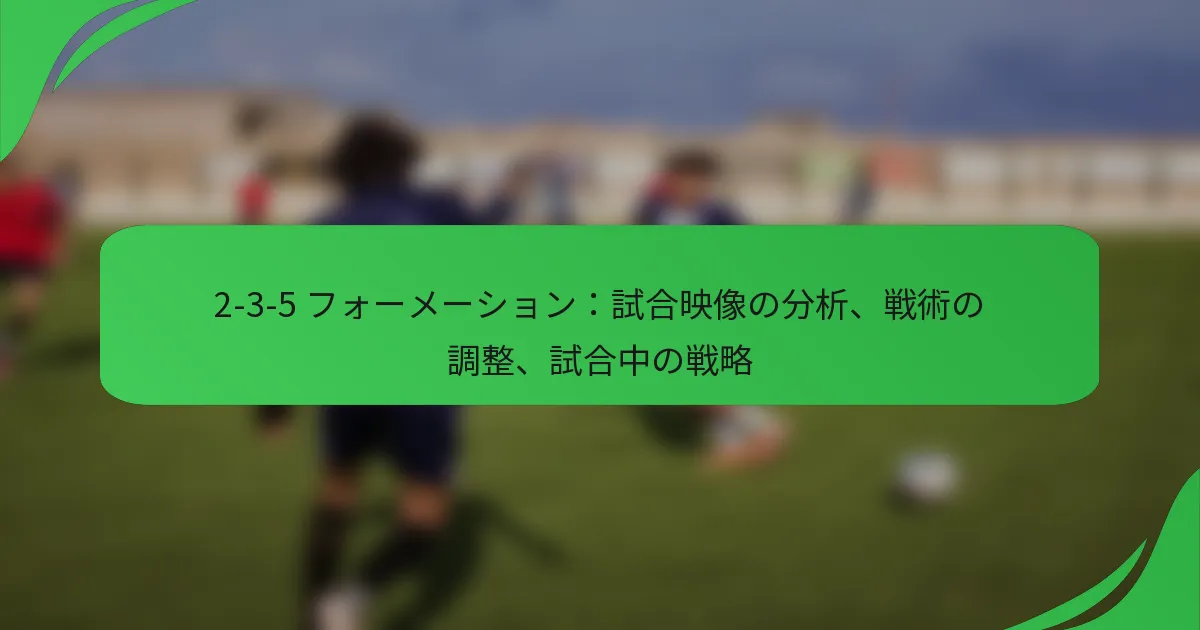 2-3-5フォーメーションは、2人のディフェンダー、3人のミッドフィールダー、5人のフォワードという独特の配置で攻撃的なプレーを優先する歴史的なサッカー戦略です。試合の映像を分析することで、選手のダイナミクスや戦術的な効果に関する重要な洞察が得られ、コーチはアプローチを洗練させることができます。このフォーメーションを最大限に活用するためには、チームは相手や進化する試合状況に適応する戦略的な調整を実施する必要があります。 サッカーにおける2-3-5フォーメーションとは? 2-3-5フォーメーションは、2人のディフェンダー、3人のミッドフィールダー、5人のフォワードを特徴とするクラシックなサッカーのセットアップです。このフォーメーションは攻撃的なプレーを強調し、20世紀前半に広く使用され、チームがボールを支配し得点機会を創出することを可能にしました。 2-3-5フォーメーションの歴史的起源と進化 2-3-5フォーメーションは19世紀後半に起源を持ち、20世紀初頭に人気を博しました。これは、チームがより多くのゴールを得るために攻撃的なスタイルのプレーを求めた結果です。このフォーメーションは1920年代と1930年代に特にイギリスや南アメリカで広く用いられました。 時が経つにつれて、2-3-5はチームが変化するプレースタイルに適応する中で、より複雑なフォーメーションへと進化しました。1950年代には、3人目のディフェンダーを追加したWMフォーメーションの導入があり、チームが守備の安定性を優先し始めたことで2-3-5からのシフトが見られました。 2-3-5フォーメーションの主な特徴と構造 2-3-5フォーメーションは、攻撃的な構造が特徴で、フォワードに強く重点を置いています。2人のディフェンダーが基本的な守備ラインを提供し、3人のミッドフィールダーが守備と攻撃の両方をサポートします。5人のフォワードは多数の攻撃オプションを生み出し、迅速なトランジションと相手守備へのプレッシャーを可能にします。 このフォーメーションは通常、フラットなバックラインを特徴とし、ディフェンダーは中央に配置されます。ミッドフィールダーは三角形の形でプレーし、ボールの動きとフォワードへのサポートを促進します。フォワードは通常、ライン状に配置され、攻撃における幅と深さを最大化します。 2-3-5フォーメーションにおける選手の役割 ディフェンダー:主に相手の攻撃者を止め、守備ゾーンからボールをクリアする役割を担います。 ミッドフィールダー:守備と攻撃の間のリンクとして機能し、両方のフェーズでサポートを提供し、ミッドフィールダーエリアをコントロールします。 フォワード:ゴールを決めること、チャンスを創出すること、相手の守備にプレッシャーをかけることに集中します。 各選手の役割は、フォーメーション内のバランスを維持するために重要です。ディフェンダーはギャップをカバーするために効果的にコミュニケーションを取る必要があり、ミッドフィールダーは守備の任務と攻撃のランを切り替える柔軟性が求められます。フォワードは敏捷性があり、得点機会を活かすためのフィニッシュ技術が必要です。 現代のフォーメーションとの比較 現代のフォーメーション、例えば4-3-3や4-2-3-1は、2-3-5の純粋な攻撃性よりも守備の安定性と柔軟性を優先することが多いです。これらの現代的なセットアップは通常、より多くのディフェンダーを配置し、チームがカウンターアタックをより良く管理し、ボールを保持することを可能にします。 2-3-5は今日ではあまり一般的ではありませんが、攻撃的なプレーを重視するいくつかのチームにはその原則が今でも見られます。現代のフォーメーションは、2-3-5の攻撃的な考え方を取り入れつつ、より多くの戦術的な規律と守備の組織を組み込んでいます。 2-3-5フォーメーションの利点と欠点 2-3-5フォーメーションの主な利点は、その攻撃的な潜在能力です。5人のフォワードを持つことで、チームは複数の得点機会を創出し、相手に対して常にプレッシャーをかけることができます。このフォーメーションは、特にフォワードがスキルを持ち、連携が取れている場合、守備を圧倒することができます。 しかし、2-3-5フォーメーションには特に守備において重大な欠点があります。ディフェンダーが2人しかいないため、チームはカウンターアタックに対して脆弱であり、この弱点を突くチームに苦しむことがあります。また、ミッドフィールダーの深さが不足しているため、試合をコントロールし、ボールを保持するのが難しくなることがあります。 利点: 高い攻撃的潜在能力 多数の得点チャンスを創出する能力 欠点: カウンターアタックに対する脆弱性 ミッドフィールダーのコントロールの弱さ 2-3-5フォーメーションのための試合映像の分析方法は? 2-3-5フォーメーションの試合映像を分析することは、選手の動き、チームの相互作用、そしてこの戦術的セットアップの効果を定義する重要な