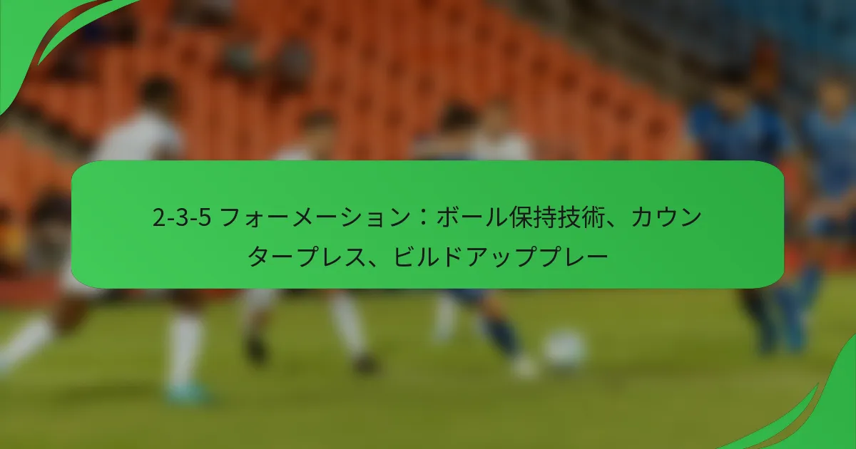 2-3-5フォーメーションは、2人のディフェンダー、3人のミッドフィールダー、5人のフォワードの配置を通じて攻撃的なプレーを優先するクラシックなサッカー戦略です。このセットアップは、ボールの支配を支配することを目指すだけでなく、効果的なカウンタープレスとビルドアッププレーを促進し、ボールを失った後に迅速にコントロールを取り戻すことを可能にします。ボールコントロール、戦略的なパス、協調した動きに焦点を当てることで、チームは攻撃能力を高め、相手に圧力をかけ続けることができます。 サッカーにおける2-3-5フォーメーションとは? 2-3-5フォーメーションは、2人のディフェンダー、3人のミッドフィールダー、5人のフォワードから成るクラシックなサッカー戦略です。このフォーメーションは攻撃的なプレーとボール支配を強調し、攻撃ゾーンで数的優位を利用して相手のディフェンスを圧倒することを目指します。 2-3-5フォーメーションの歴史的背景と進化 2-3-5フォーメーションは19世紀後半に登場し、1930年代までサッカー戦術を支配しました。当初は攻撃能力を最大化するために設計されており、得点に対するゲームの初期の焦点を反映しています。時間が経つにつれて、スポーツが進化する中で、チームはより防御的な安定性の必要性を認識し、このフォーメーションの徐々に衰退することにつながりました。 サッカー戦術が進化するにつれて、2-3-5はWMフォーメーションなどのよりバランスの取れたフォーメーションに取って代わられ、3人目のディフェンダーが導入されました。このシフトは、選手の運動能力と戦術的な意識の向上に対する反応として大きなものであり、攻撃と防御の両方に対してより構造化されたアプローチが必要とされました。 2-3-5フォーメーションの主な特徴 基本的なディフェンシブラインを提供する2人のセンターバック。 しばしば中央のプレイメーカーを含む3人のミッドフィールダー。 ウィンガーと中央ストライカーからなることが多い5人のフォワード。 幅と攻撃的なプレーを強調し、フランクを効果的に利用する。 高いプレッシングと迅速なトランジションで相手のミスを突く。 2-3-5フォーメーションの利点 2-3-5フォーメーションの主な利点は、その攻撃の可能性であり、チームが多数の得点機会を創出できることです。5人のフォワードを持つことで、チームはディフェンスを引き伸ばし、ギャップを利用することができ、高得点の試合につながります。さらに、このフォーメーションは選手間の流動的な動きと創造性を促進し、相手が攻撃パターンを予測するのを難しくします。 このフォーメーションはボール支配も促進します。ミッドフィールダーのトリオはゲームのテンポをコントロールし、ボールを効果的に配分できます。ボールを保持することで、チームはプレーを支配し、相手のカウンターアタックのチャンスを制限できます。 2-3-5フォーメーションの欠点 攻撃の強みにもかかわらず、2-3-5フォーメーションには特に防御の安定性に関する顕著な弱点があります。ディフェンダーが2人しかいないため、チームは特に速い相手に対してカウンターアタックに脆弱になる可能性があります。これにより、ディフェンスが数的に劣る状況が生じ、高リスクのシナリオにつながることがあります。 さらに、5人のフォワードに依存することでミッドフィールダーのサポートが不足し、ボールを失ったときにボールを取り戻すのが難しくなることがあります。このフォーメーションを使用するチームは、ミッドフィールダーが規律を持ち、ディフェンスをサポートするために戻る能力があることを確認する必要があります。 現代のフォーメーションとの比較 フォーメーション ディフェンダー ミッドフィールダー フォワード 強み 弱み 2-3-5 2 3 5 高い攻撃力、ボール支配 防御の脆弱性 4-3-3 4 3 3 攻撃と防御のバランス 攻撃的にあまり積極的でない場合がある 4-2-3-1 4 2 3 強力なミッドフィールダーのコントロール 規律のある選手が必要 2-3-5フォーメーションでボール支配を維持する方法は? 2-3-5フォーメーションでボール支配を維持するには、効果的なボールコントロール、戦略的なパス、協調した選手の動きが必要です。コミュニケーションと状況認識を強調することで、チームはボールを保持し、ゲームのペースを支配する能力を高めることができます。 2-3-5フォーメーションにおけるボール支配のための重要なテクニック 2-3-5フォーメーションでの成功したボール支配には、技術的なスキルと戦術的な意識の組み合わせが必要です。選手は以下のテクニックに焦点を当てるべきです: ボールコントロール:選手はプレッシャーの中でボールを保持するために、優れたファーストタッチとドリブルスキルを身につける必要があります。 効果的なパス:迅速で短いパスは、ボールを効率的に移動させ、ターンオーバーを最小限に抑えるのに役立ちます。 オフ・ザ・ボー