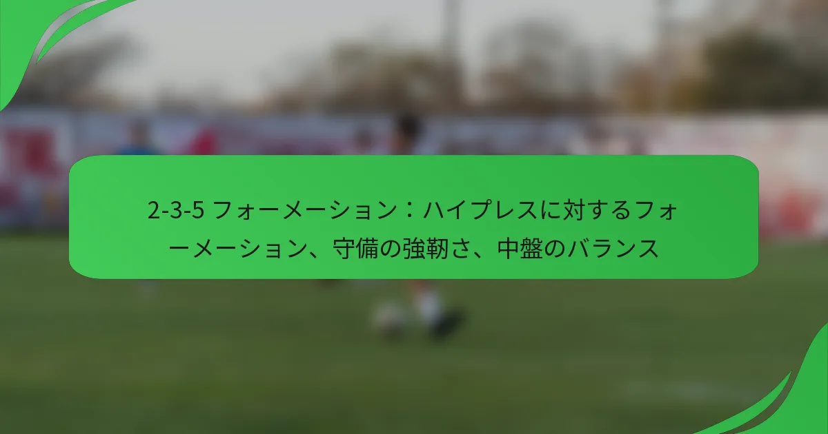 2-3-5フォーメーションは、攻撃力と守備力のバランスを取ったクラシックなサッカーのセットアップで、2人のディフェンダー、3人のミッドフィールダー、5人のフォワードで構成されています。この構造は特にハイプレス戦術に対して効果的で、チームがボールを保持し、相手が空けたスペースを利用することを可能にします。強力なミッドフィールダーの存在により、このフォーメーションはプレス耐性を高め、攻撃と守備の間のスムーズな移行を確保します。 サッカーにおける2-3-5フォーメーションとは? 2-3-5フォーメーションは、2人のディフェンダー、3人のミッドフィールダー、5人のフォワードで構成されるクラシックなサッカーのセットアップです。攻撃的なプレーを強調し、20世紀初頭から中頃にかけて広く使用されており、攻撃と守備のバランスを示しています。 2-3-5フォーメーションの定義と歴史的背景 2-3-5フォーメーションは「ピラミッド」とも呼ばれ、19世紀末から1930年代まで広く用いられていました。このフォーメーションは、合理的な守備構造を維持しつつ、攻撃能力を最大化するように設計されていました。このフォーメーションにより、チームはボールを支配し、多くの得点機会を創出することができました。 歴史的に見ると、2-3-5はフィールド上により多くの攻撃的な選手が必要とされることへの応答でした。チームがより守備的な戦略を採用し始めると、2-3-5は次第に一般的ではなくなり、守備力を優先するフォーメーションが台頭しました。 2-3-5フォーメーションにおける主要な選手の役割とポジショニング 2-3-5フォーメーションでは、各選手が全体の戦略に貢献する特定の役割を持っています。主要な役割は以下の通りです: ゴールキーパー:最後の防衛線で、ゴールへのシュートを防ぐ役割を担います。 ディフェンダー(2):中央に配置され、相手のフォワードをマークし、危険なボールをクリアする任務を負います。 ミッドフィールダー(3):これらの選手は守備と攻撃をつなぎ、ミッドフィールドをコントロールし、ボールを配分します。 フォワード(5):前方に配置され、主な役割はゴールを決め、攻撃の脅威を生み出すことです。 この構造は、守備から攻撃への迅速な移行を可能にし、ミッドフィールダーが守備の任務と攻撃のプレーの両方をサポートします。フォワードに重点を置くことで、相手の守備を圧倒し、得点機会を生み出すことができます。 現代サッカーにおける2-3-5フォーメーションの進化 2-3-5フォーメーションは現代サッカーではほとんど使われなくなりましたが、その原則は現代の戦術に影響を与え続けています。チームは今や、4-3-3や4-2-3-1など、より良い守備の安定性を提供するフォーメーションを選ぶことが多いです。しかし、2-3-5の攻撃的な考え方は、攻撃的なプレーを優先するチームに今でも見られます。 現代の2-3-5の適応は流動性と多様性に焦点を当てており、選手がプレー中にポジションを入れ替えることを可能にします。この柔軟性は、チームが強力な攻撃的存在を維持しつつ、相手のハイプレスに適応するのに役立ちます。 現代のフォーメーションとの比較 フォーメーション ディフェンダー ミッドフィールダー フォワード 主な強み 2-3-5 2 3 5 強力な攻撃的存在 4-3-3 4 3 3 攻撃と守備のバランス 4-2-3-1 4 2 3 強力なミッドフィールダーのコントロール 2-3-5フォーメーションはフォワードの数が多いことを強調していますが、現代のフォーメーションはしばしば守備の堅実さとミッドフィールダーのコントロールを優先します。今日のチームは、迅速な移行と選手の役割の柔軟性を可能にするフォーメーションを採用する傾向があり、サッカー戦術の進化を反映しています。 2-3-5フォーメーションはハイプレス戦術に対してどのように機能するか? 2-3-5フォーメーションは、その構造を利用してスペースを作り、ボールを保持することでハイプレス戦術に効果的に対抗できます。このフォーメーションは迅速な移行と戦略的な選手のポジショニングを強調し、チームがプレスをかける相手によって空けられたギャップを利用できるようにします。 2-3-5フォーメーションでハイプレスに対抗するための戦略 ハイプレスに対抗するために、2-3-5フォーメーションを使用するチームは、迅速なボール移動と幅を維持することに焦点を当てるべきです。プレーを広げることで、チームはプレスをかける相手を引き伸ばし、スルーパスやプレーの切り替えの機会を生み出すことができます。 強力なミッドフィールダーの存在を活用することが重要です。3人のミッドフィールダーは、プレッシャーの中でボールを受け取り、迅速にパスを出すかドリブルで抜け出す決断を下す能力が求められます。これには、プレッシャーのトリガーを特定し、それに応じて反応するための選手間の優れたコミュニケーションが必要です。 もう一つの効果的な戦略は、ボールが守備のフェーズにあるときに