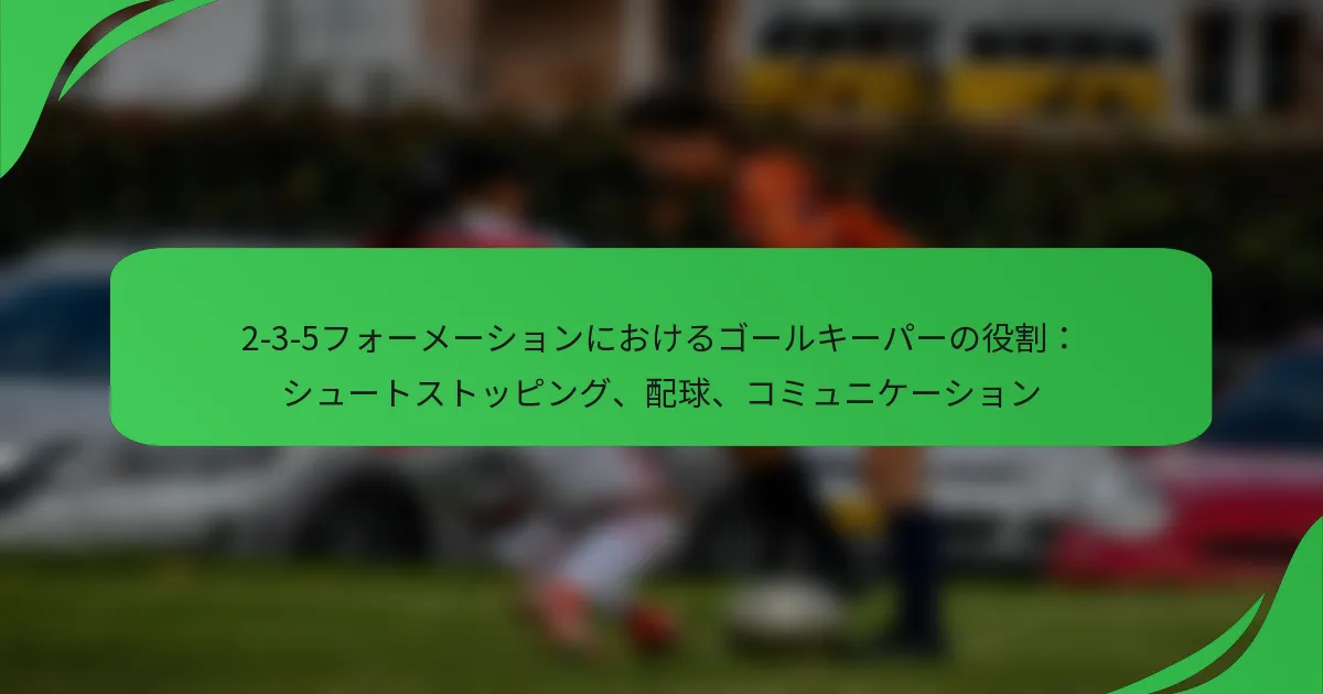 攻撃力で知られる2-3-5フォーメーションは、シュートストッピング、配球、コミュニケーションにおいて重要な役割を果たすゴールキーパーに独自の要求を課します。効果的なシュートストッピングには迅速な反応と強いポジショニングが必要であり、配球は守備から攻撃への移行に不可欠です。さらに、ゴールキーパーはディフェンダーと明確にコミュニケーションを取り、フォーメーションの攻撃的な焦点の中で一貫性のある組織的な守備を維持する必要があります。 サッカーにおける2-3-5フォーメーションとは? 2-3-5フォーメーションは、2人のディフェンダー、3人のミッドフィルダー、5人のフォワードからなる伝統的なサッカーのセットアップです。このフォーメーションは攻撃的なプレーを強調し、チームが相手にプレッシャーをかけながら守備においてもバランスの取れた構造を維持できるようにします。 2-3-5フォーメーションの歴史的背景 2-3-5フォーメーションは、19世紀後半にチームがより防御的なスタイルから攻撃的なプレーに移行する中で登場しました。20世紀初頭には特にイングランドや南アメリカで人気を博し、チームは得点機会を最大化しようとしました。 そのピーク時には、2-3-5は複数の攻撃オプションを生み出す能力が称賛され、高得点の試合を引き起こすことが多くありました。このフォーメーションの重要な選手には、守備の弱点を突くことができる熟練したフォワードや、攻撃と守備の両方をサポートするミッドフィルダーが含まれます。 2-3-5フォーメーションの主な特徴 守備構造:2人のセンターバックが基本的な守備ラインを提供し、しばしば多才で広いエリアをカバーできる必要があります。 ミッドフィールドのコントロール:3人のミッドフィルダーが守備と攻撃の両方を助け、プレーメイキングやボール配球に関与します。 攻撃の焦点:5人のフォワードが多数の攻撃オプションを生み出し、迅速な移行と相手の守備へのプレッシャーを可能にします。 ウィングプレー:このフォーメーションは、ウィンガーを使用してフィールドを広げ、中央の攻撃者のためにスペースを作ることを奨励します。 2-3-5と現代のフォーメーションの違い 現代のフォーメーション、例えば4-3-3や4-2-3-1は、通常、より多くのディフェンダーを特徴としており、守備の安定性を高めます。それに対して、2-3-5は攻撃を優先し、しばしばチームをカウンターアタックに対して脆弱にします。 さらに、現代のフォーメーションはポジショナルプレーと流動性を強調し、選手が役割を入れ替えることを可能にします。しかし、2-3-5は固定されたポジションに依存しており、試合中の戦術的柔軟性を制限する可能性があります。 2-3-5フォーメーションがゲームプレーに与える影響 2-3-5フォーメーションは、速いペースの攻撃スタイルを促進することでゲームプレーに大きな影響を与えます。このセットアップを使用するチームは、ボールを支配し、多くの得点機会を生み出すことが多く、高得点の試合につながります。 しかし、このフォーメーションの固有の守備の弱点は、特にカウンターアタックに優れたチームに対して脆弱性をもたらす可能性があります。コーチは、攻撃の強みと守備の責任をバランスさせ、圧倒されないようにしなければなりません。 2-3-5フォーメーションにおけるゴールキーパーのシュートストッピングの責任とは? 2-3-5フォーメーションにおけるゴールキーパーのシュートストッピングの責任は、反応、ポジショニング、コミュニケーションの組み合わせを通じて効果的にゴールを防ぐことに焦点を当てています。ゴールキーパーは、さまざまなシュートタイプに適応しながら、ゲームの状況を把握し、ディフェンダーと連携して堅固な守備を確保する必要があります。 効果的なシュートストッピングのための基本技術 効果的なシュートストッピングには、ゴールキーパーが習得すべきさまざまな技術が必要です。主な方法には、ダイビング、ブロッキング、キャッチングがあり、それぞれ異なるシュートシナリオに適しています。ゴールキーパーは、反応速度と反応時間を向上させるために、これらの技術を定期的に練習する必要があります。 ダイビングを行う際、ゴールキーパーはできるだけ多くの地面をカバーするために体を完全に伸ばすことを目指すべきです。適切な手のポジショニングは、キャッチングとシュートの弾き返しの両方において重要であり、ボールが指の間をすり抜けないようにします。 ボールの軌道に基づいて、正しい手を使用してキャッチまたは弾き返します。 シュートが行われる前にポジショニングを調整するために、迅速なフットワークを練習します。 ダイビング中のバランスを向上させるために、重心を低く保つことに集中します。 ゴールキーパーのポジショニング戦略 ポジショニングは、ゴールキーパーがシュートに効果的に対応するために重要です。適切にポジシ